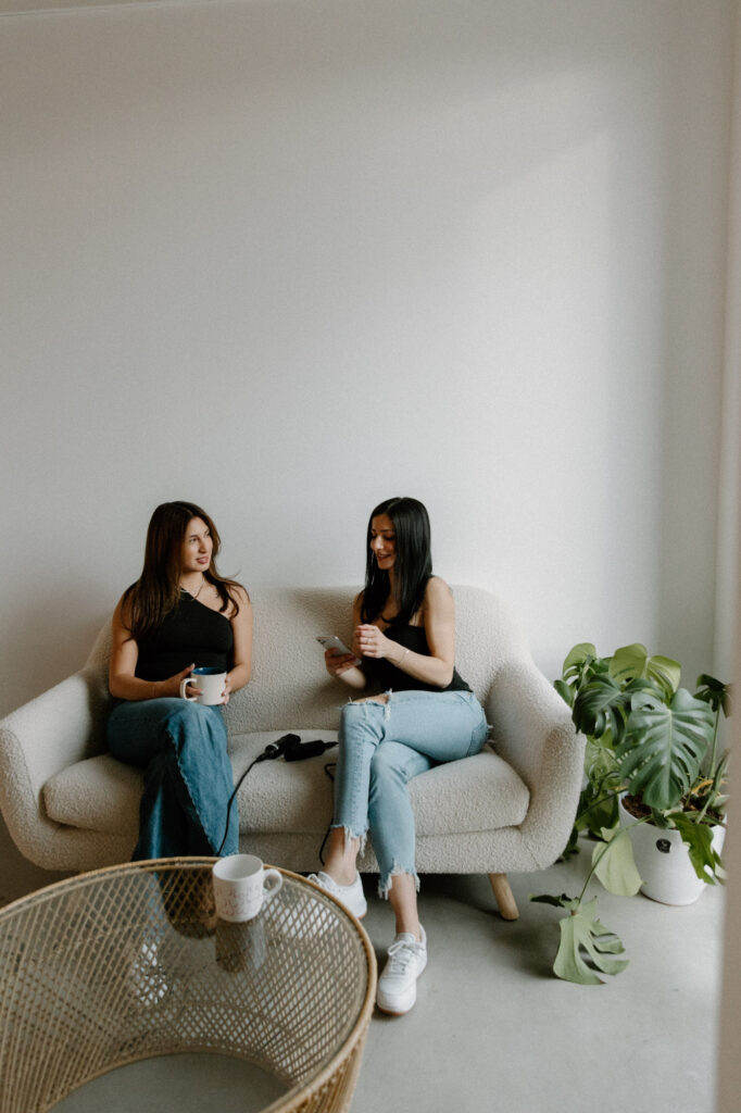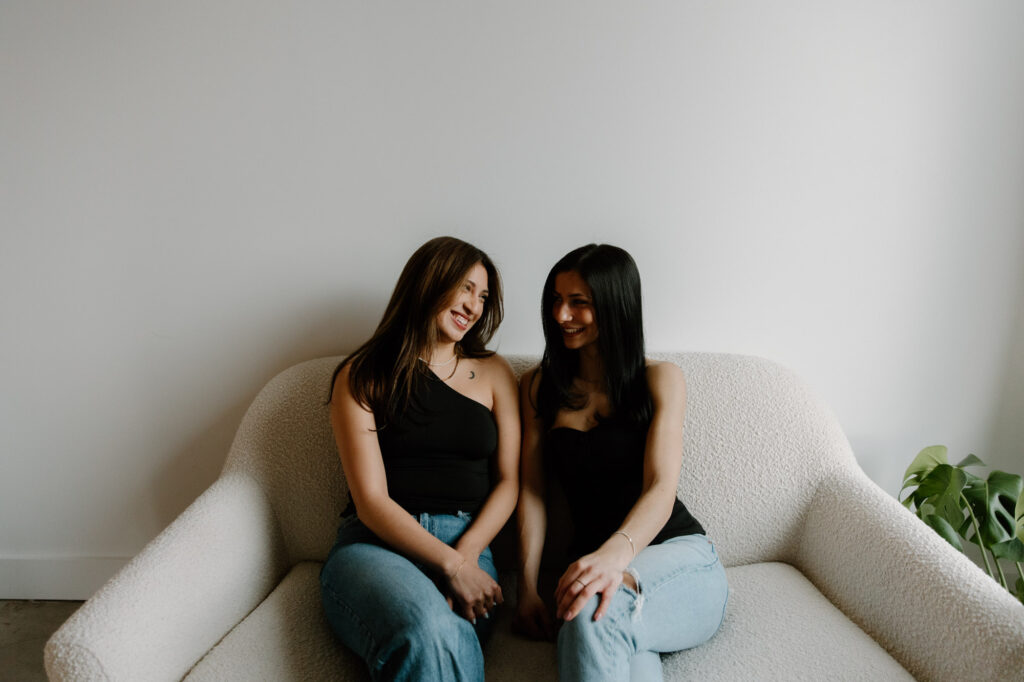 We recently had the joy of photographing a brand shoot for Becca and Vanessa, the creative duo behind Refract — a podcast centered on open and honest conversations about faith, life, and everything in between. This session took place at a light-filled studio in Kelowna — the perfect backdrop for capturing the heart and voice of their brand.